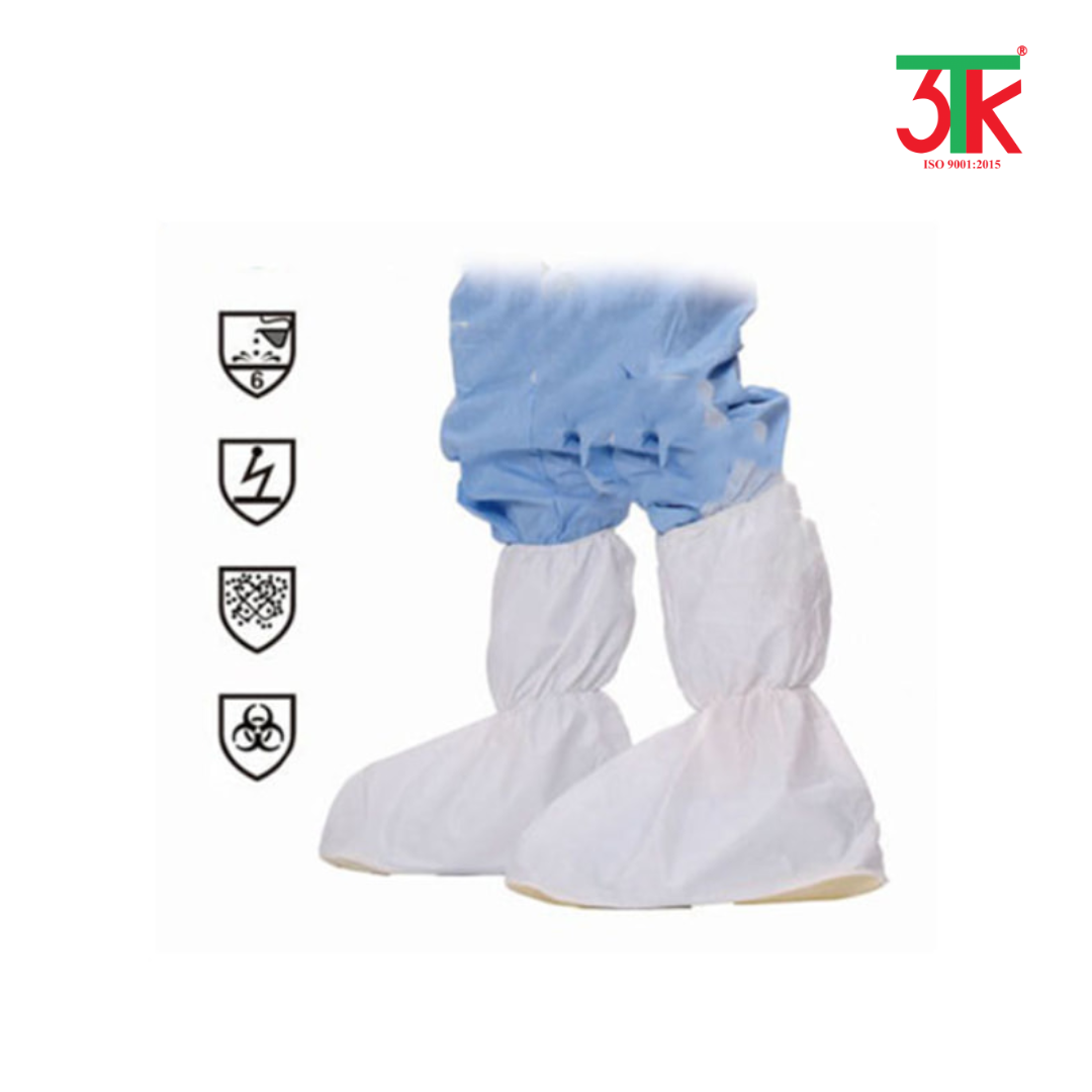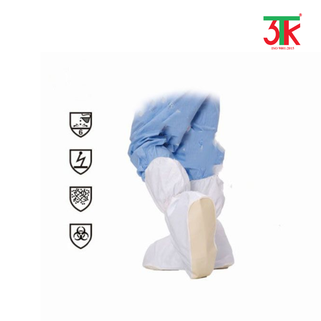 - Bảo vệ chống thấm nước và chống hóa chất: giúp ngăn dung dịch, máu, hay hóa chất lỏng tiếp xúc trực tiếp với giày dép và da chân.