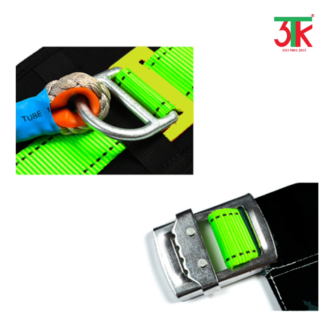Ngoài ra, khóa định vị chữ D (D-ring) được thiết kế ở vị trí thuận tiện, cho phép người lao động thao tác linh hoạt và đảm bảo điểm neo luôn vững chắc trong suốt quá trình làm việc.