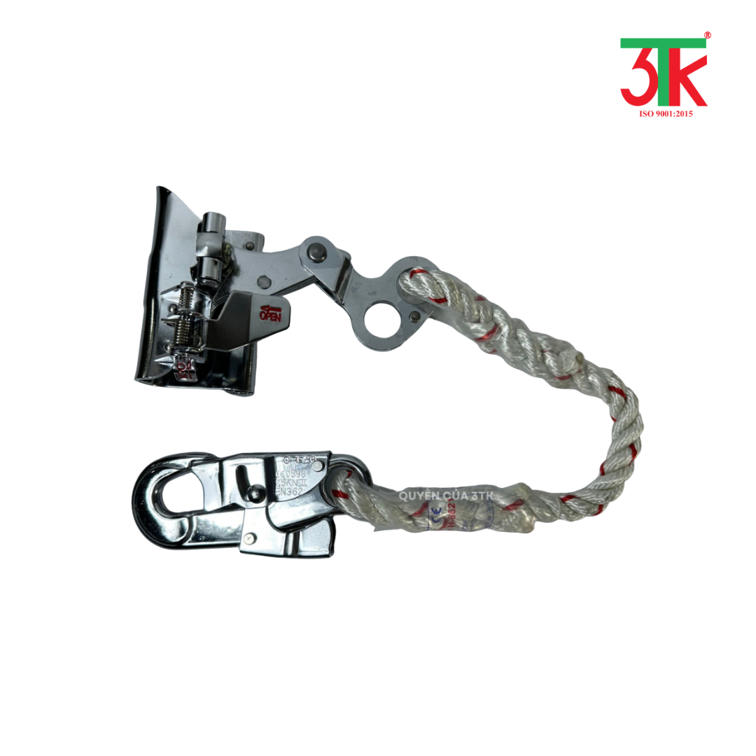 Đầu còn lại của dây được nối với móc thép dùng để liên kết với dây đai hoặc dây nịt toàn thân, tạo nên hệ thống bảo hộ kép, hạn chế tối đa rủi ro trong mọi tư thế làm việc.