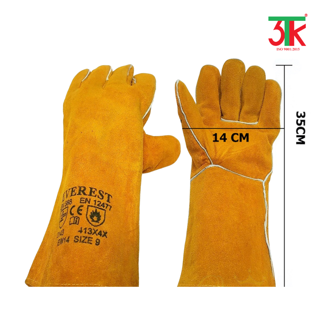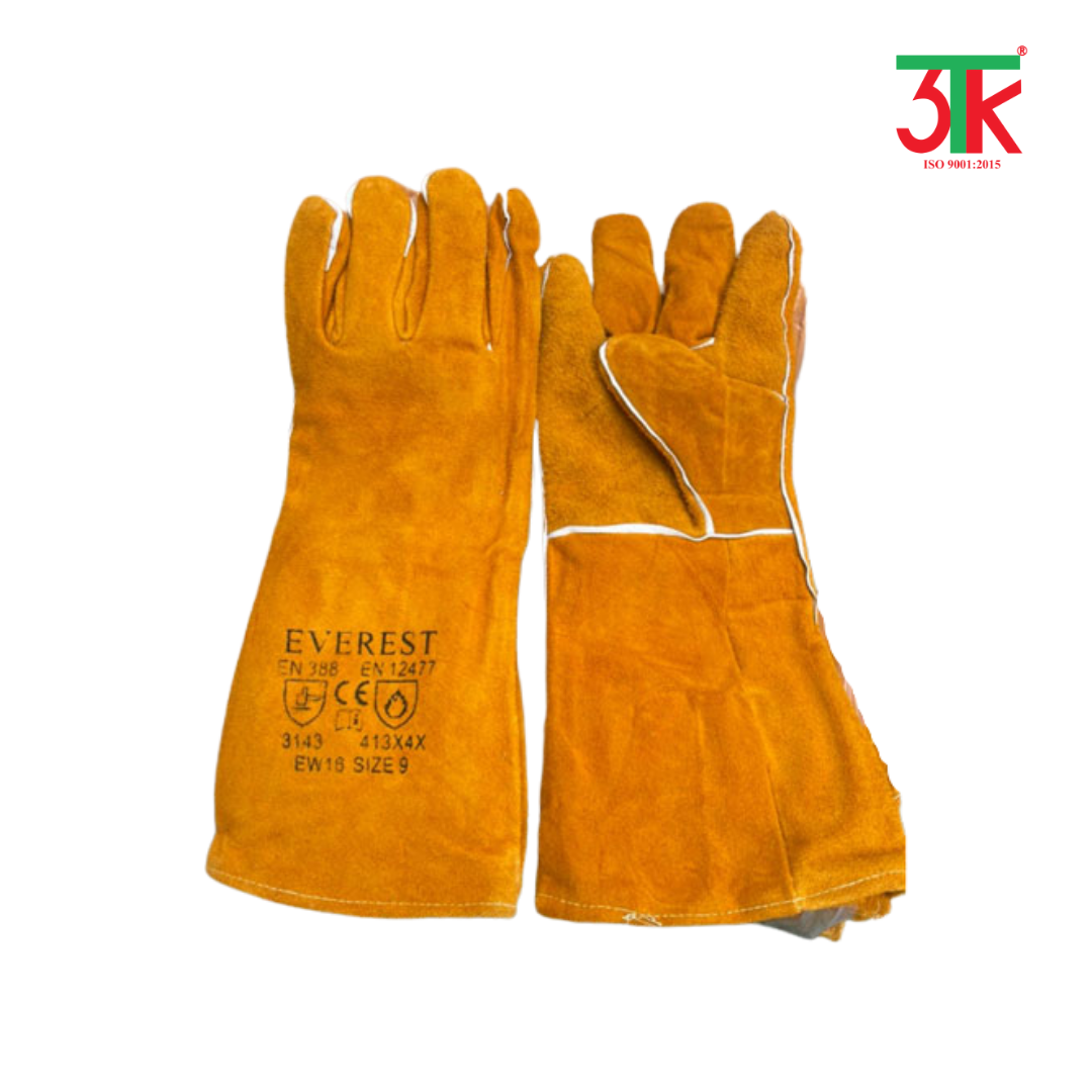 Chiều dài tiêu chuẩn của găng tay Everest EW16 là 16 inch (khoảng 41 cm), dài qua cổ tay và che phủ cả vùng cẳng tay. Thiết kế mở rộng này giúp người lao động tránh khỏi nguy cơ bị tia lửa nóng bắn vào phần da tay hở và tăng cường khả năng bảo hộ lên tối đa. Đây là yếu tố cực kỳ quan trọng đặc biệt trong công việc hàn trần, hàn trên cao hoặc khi làm việc gần lò nhiệt.