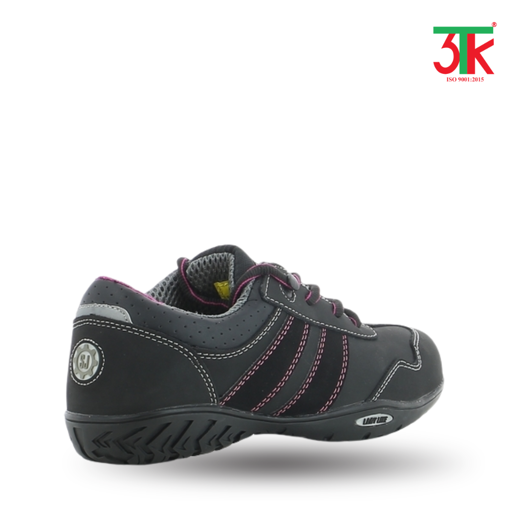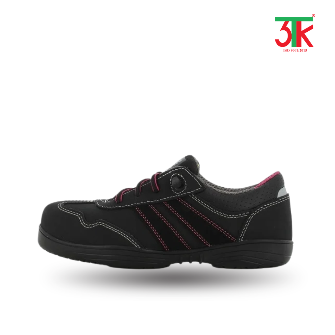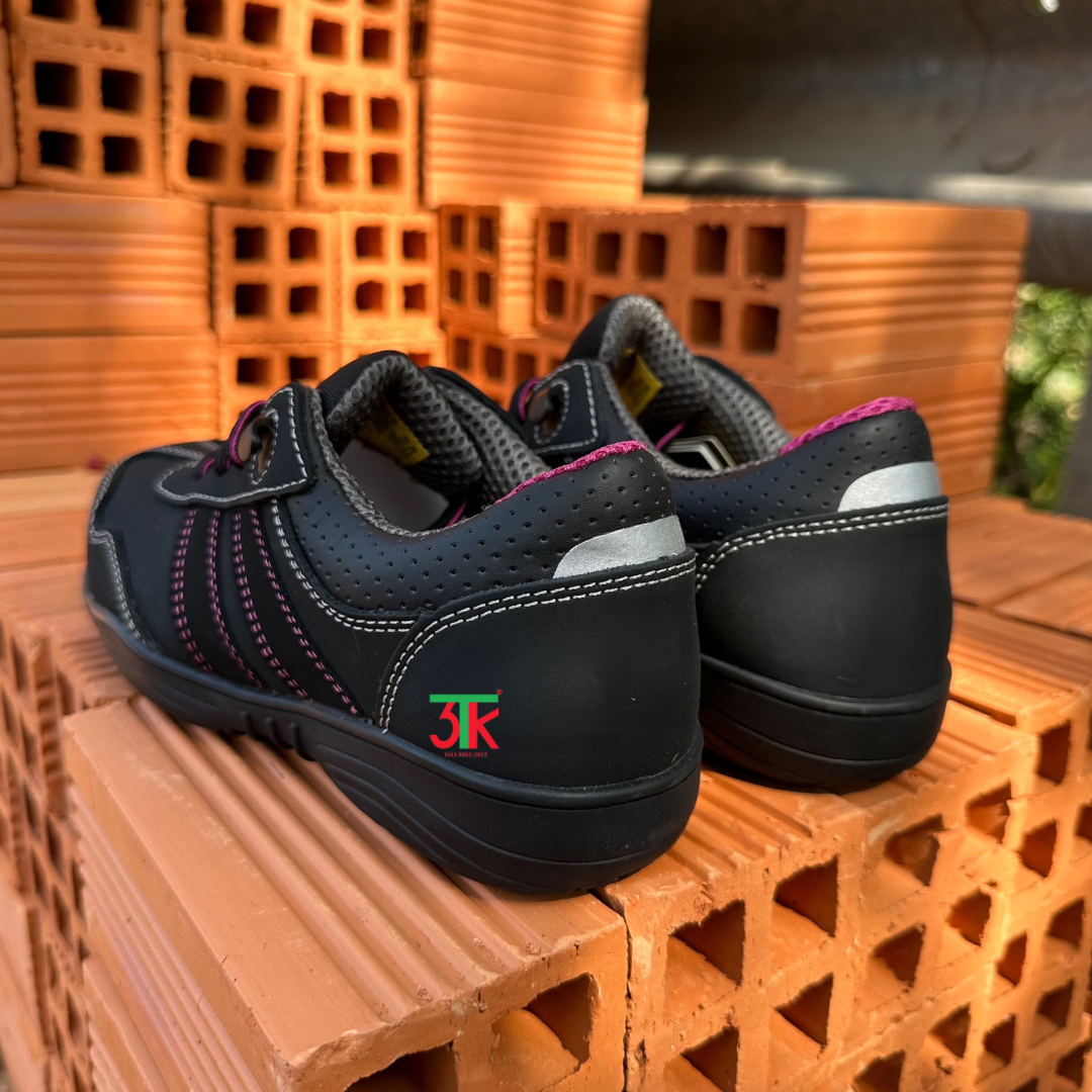 Theo thông tin từ 3TK, sản phẩm này thuộc thương hiệu Safety Jogger của Bỉ, với màu đen tím, chất liệu da PU cao cấp, mũi giày composite, thân giày chống thấm, chống tĩnh điện và có tấm lót SJ Flex chống đâm xuyên.