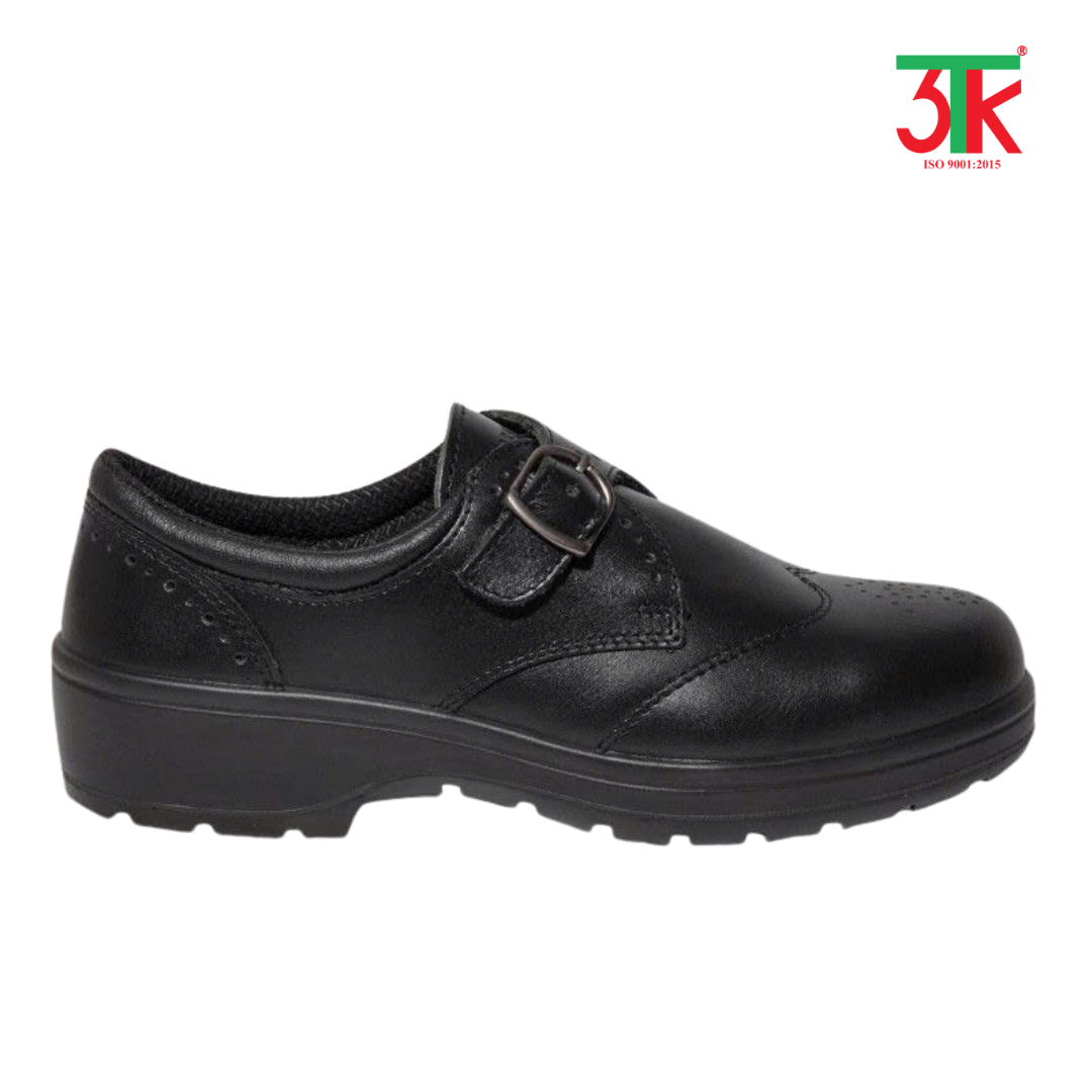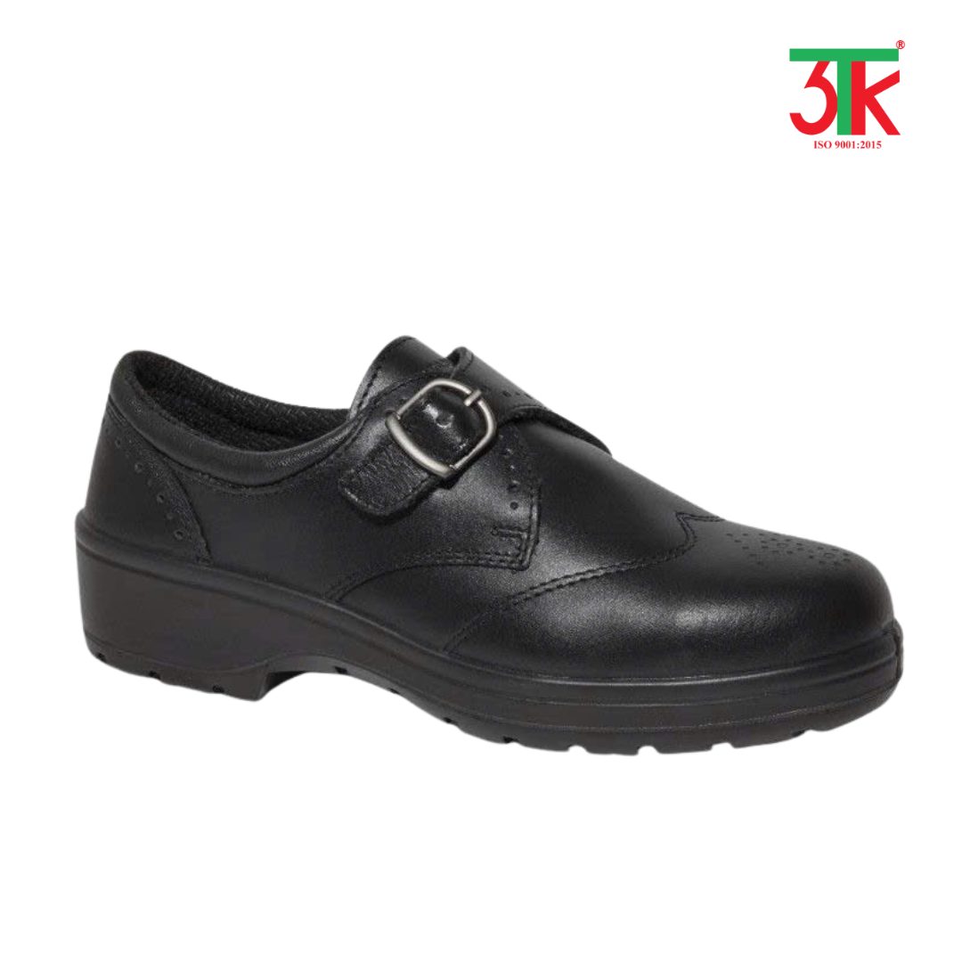 - Mũi giày bảo vệ bằng Thép (Steel Toe Cap): Ẩn bên dưới vẻ ngoài thanh lịch là mũi thép chịu lực đạt chuẩn 200 Joule. Bộ phận này bảo vệ các đầu ngón chân khỏi nguy cơ va đập hoặc vật nặng rơi trúng, đảm bảo an toàn tuyệt đối mà không làm mất đi phom dáng nhỏ gọn của đôi giày.