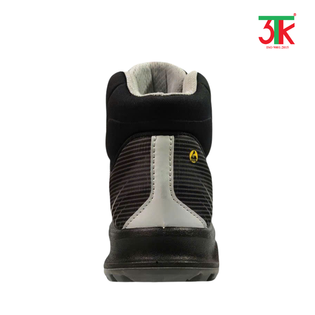 - Chi tiết phản quang: Các dải phản quang được bố trí ở phần gót giày không chỉ tạo điểm nhấn thẩm mỹ mà còn tăng cường độ nhận diện và an toàn khi làm việc trong điều kiện thiếu sáng.
