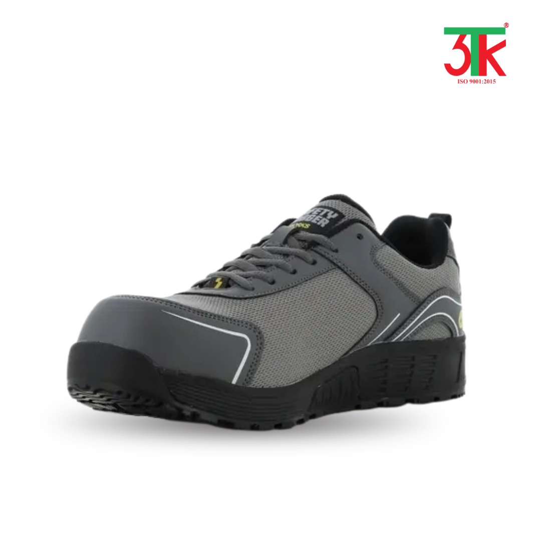 - Mũi giày (toecap): bằng composite – nhẹ hơn kim loại, không dẫn điện nhưng vẫn đủ cứng để bảo vệ ngón chân khỏi va đập mạnh.